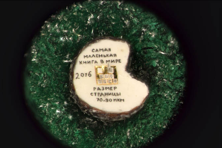 Egy fél mákszemen elfér a világ legkisebb, mindössze 0,07 milliméterszer 0,09 milliméteres könyve, amelyet egy orosz tudós készített, remélve, hogy alkotásával bekerül a Guinness Rekordok könyvébe.