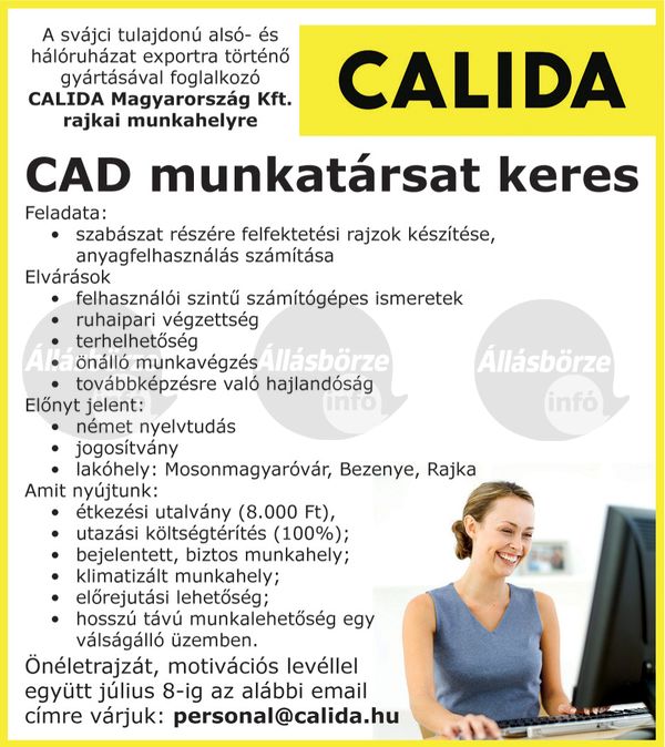 Autóipari beszállító partnercégünk részére keresünk Targoncás, Varrónő és Operátor munkatársakat Mosonszolnokra. Műszakokra való bejárás műszakos járattal vagy tömegközlekedéssel lehetséges, melyet 100%-ban térítünk. Jelentkezés: 06/30-924-6540 - viktoria.nagy@kellyservices.hu