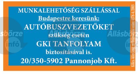 Gyurácz Busz Kft. buszvezetőket keres Petőháza, Kapuvár, Csorna, Beled vonzáskörzetében. Nyugdíjasok jelentkezését is várjuk! 06-30/957-5328