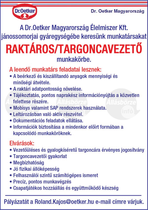 B. kategóriás jogosítvánnyal és targonca papírokkal munkát keresek. 06-30/895-5159