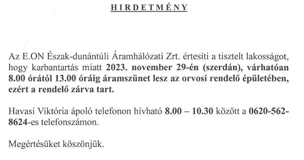 Áramszünet miatt zárva lesz Vágon az orvosi rendelő