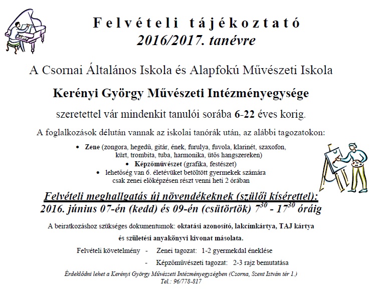 Felvételi tájékoztató a Kerényi György Alapfokú Művészeti Iskolába