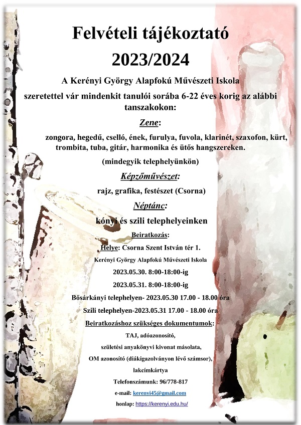 Felvételi tájékoztató a Kerényi György Művészeti Iskolába