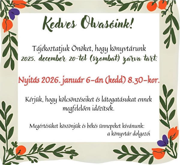Az ünnepek alatt zárva lesz a csornai könyvtár