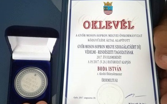 Az ünnepségen részt vett Németh Zoltán a Győr-Moson-Sopron Megyei Önkormányzat elnöke, aki a - Győr-Moson-Sopron Megyei Közgyűlés által alapított - „Győr-Moson-Sopron Megye Szolgálatáért Díjat Védelmi-Rendészeti Tagozatban” Boda István tűzoltó főtörzsőrmesternek, a Csornai Katasztrófavédelmi Őrs beosztott tűzoltójának adta át.