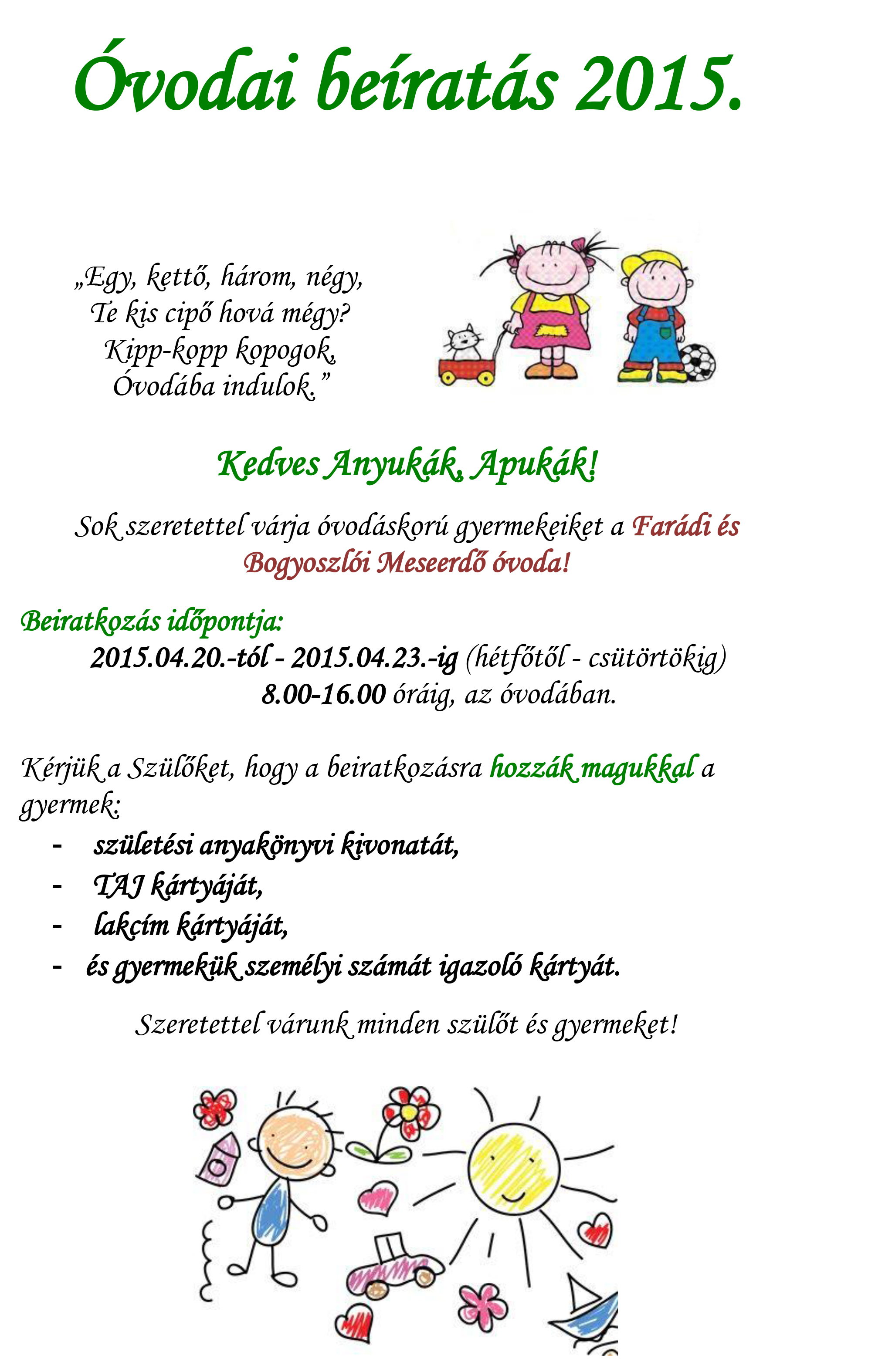 Óvodai beíratás a farádi, és bogyoszlói Meseerdő óvodába
