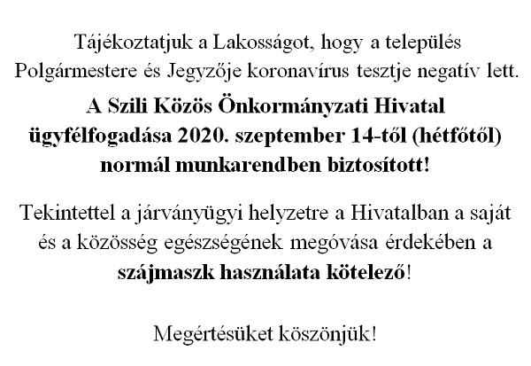 Visszaállt a normál munkarend a szili önkormányzatnál